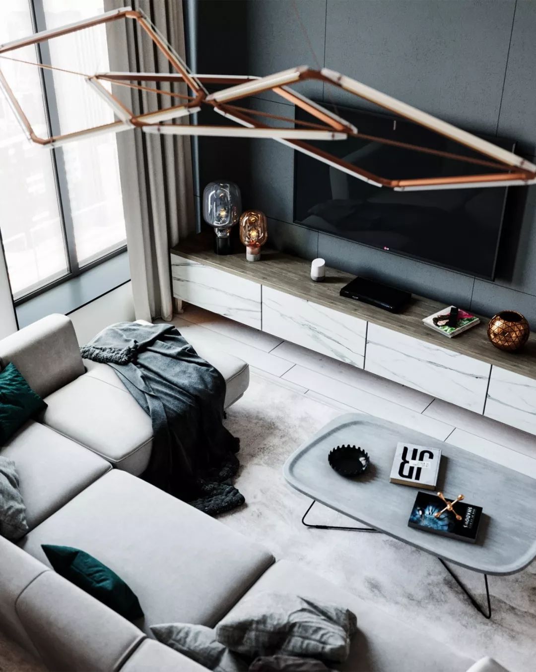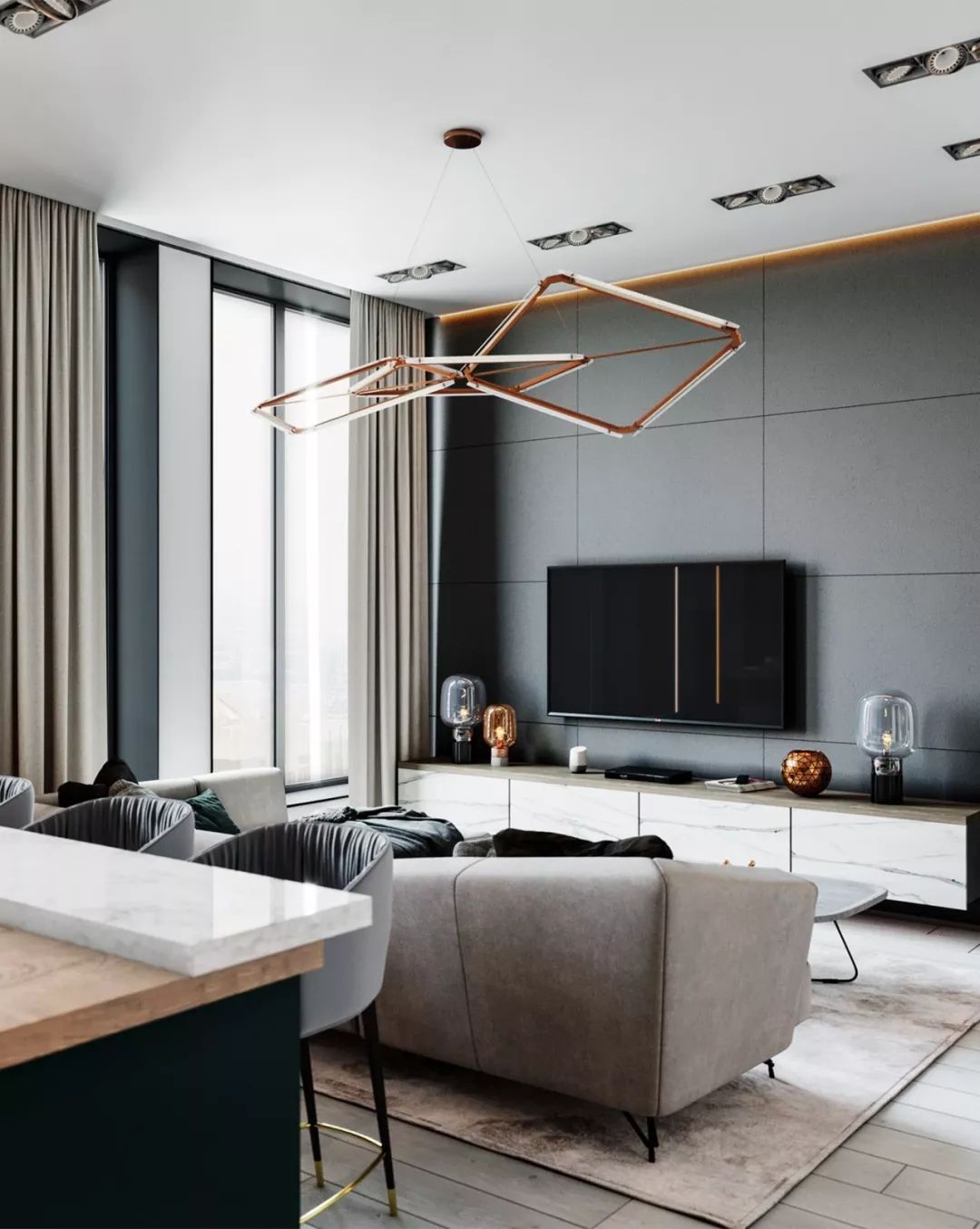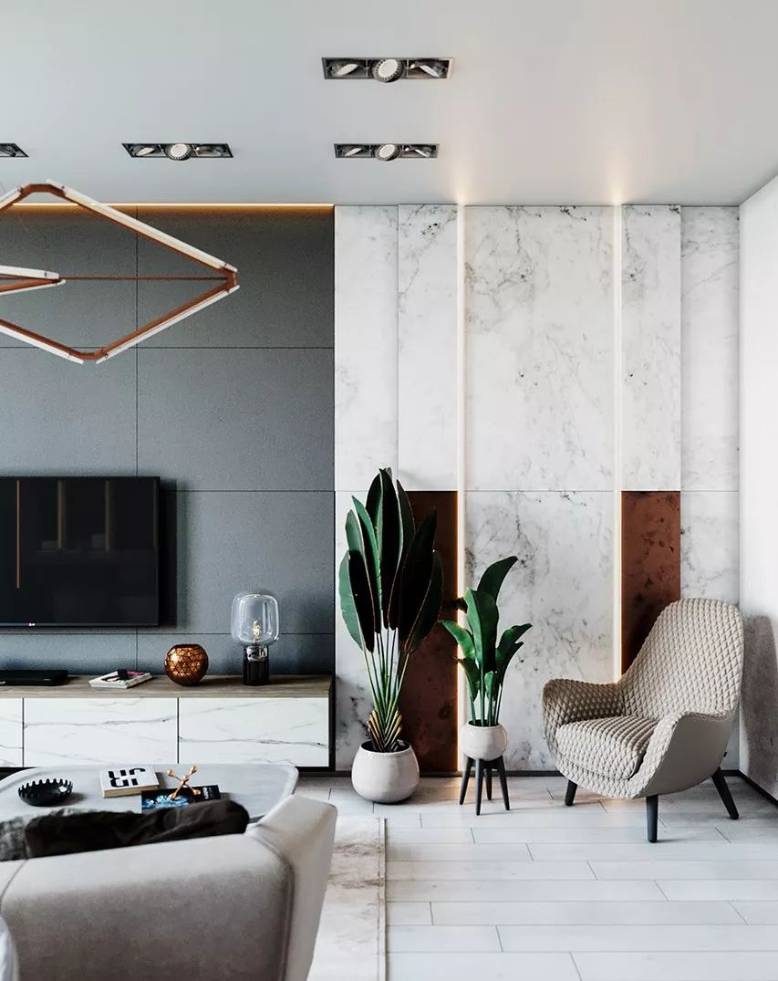 怎么样?看完以上效果图是不是十分震撼,迫不及待想要自己也装修这样的风格呢?空间大面积运用大理石和轻质材料,从材质上就将档次提升,虽然面积不大,却给人十分奢华的视觉效果。